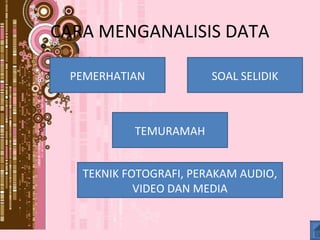 Data kualitatif ialah dalam bentuk temubual pemerhatian dan analisis dokumen. 31 Reka Bentuk Kajian Aspek-aspek yang diguna pakai dalam kajian ini antaranya ialah pendekatan kajian kaedah persampelan cara pengumpulan data teknik memproses dan menganalisis data dan penulisan laporan. Academiaedu is a platform for academics to share research papers.